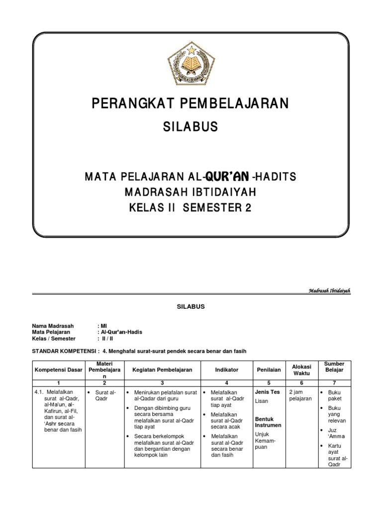 for "Silabus Al-Quran Hadist Kelas 7 Semester Genap ~ Contoh Silabus Al Qur An Hadist Mts Kelas 7 Semester 2 - Kanal Jabar"